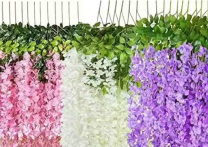 Artificial Vine Fake Pink, Purple & White Wisteria Hanging Garlands