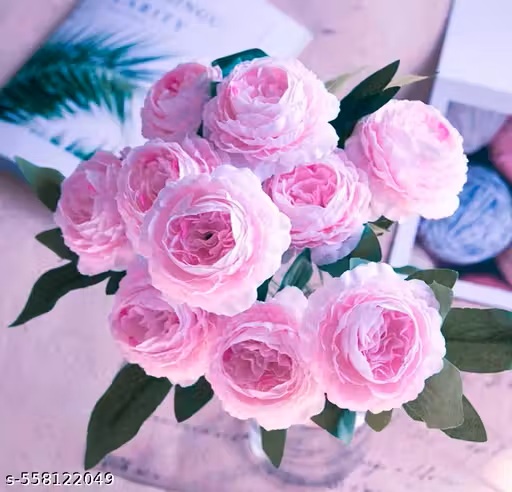 9 Heads Real Look peony Roses for Home Wedding Office Diwali Festival Christmas New year Eve Theme Decoration Premium Quality and Party Decorations | Decorative Roses for your Beautiful Decorations Natural Look Peony Rose Flowers (Pink) Real Touch Roses Silk Artificial Flowers